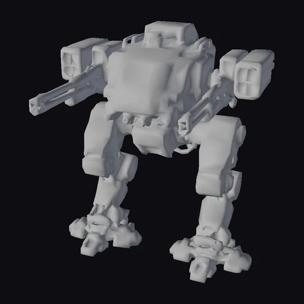 Detailed with precision, this military robot mech boasts a sturdy, industrial design, complete with a boxy, armor-plated body and powerful limbs. The model’s surface is a mix of smooth and rugged textures, with a color palette that leans heavily on earthy tones, suggesting its readiness for desert or combat environments. Equipped with dual cannons and what appears to be missile launchers on its sides, this mech is clearly designed for heavy combat. Its cockpit, marked with a distinctive window, adds a touch of realism and functionality. Ideal for use in game development, animation projects, or architectural visualizations, this model brings a sense of sci-fi realism and military prowess to any scene.