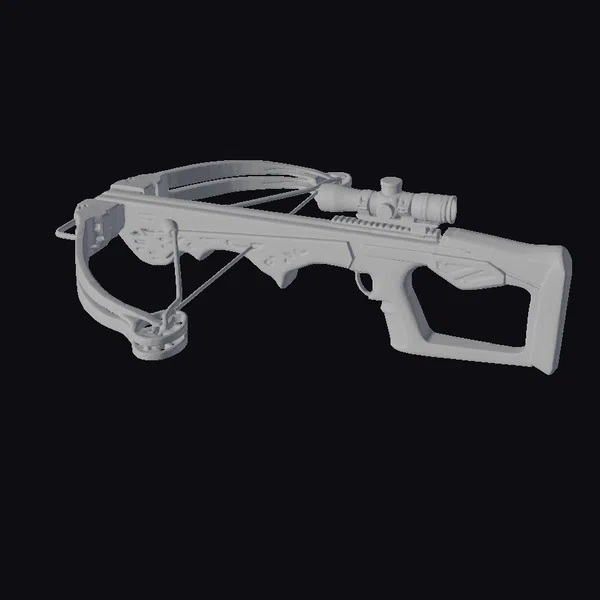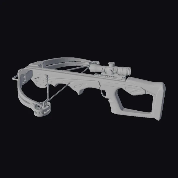 Crafted with precision, this modern crossbow boasts a dark gray, metallic finish that exudes a sense of rugged reliability. The scope mounted on top adds a layer of tactical sophistication, suggesting a tool designed for accuracy and stealth. The overall design is sleek and menacing, with clean lines and a compact frame that speaks to its use in hunting and outdoor pursuits. The crossbow’s limbs are taut, ready to unleash a bolt with deadly precision. Its modern aesthetic makes it a versatile asset for various applications, from game development and animation to architectural visualizations and design projects.
