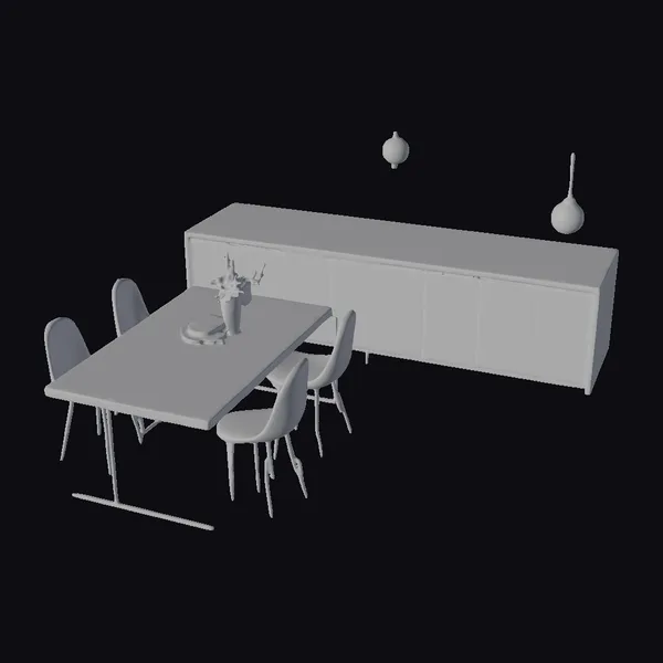 The Model “Modern Dining Room Setup” is also available upon request in many other 3D formats, such as 3MF, BLEND, FBX, OBJ, USDZ and others, making it easy to integrate into your project.