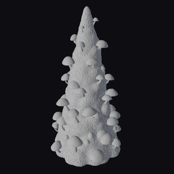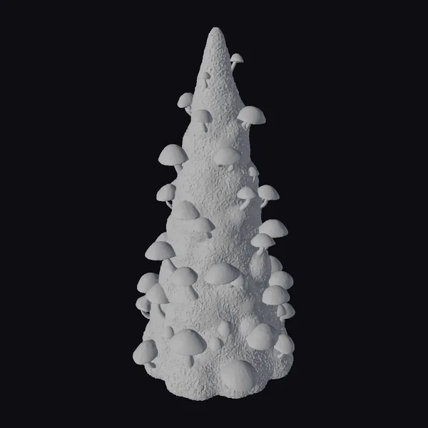 This intricately detailed mossy conic rock formation stands tall, covered in lush green moss and dotted with bright red mushrooms, each with white spots, sprouting from its surface. Delicate silver snowflakes add a touch of magic to the scene. The rock’s irregular texture and bumpy base add to its natural, earthy charm. Ideal for use in games, 3D printing, VR/AR experiences, animation, and design projects, this unique formation brings a sense of fantasy and curiosity to any environment.
