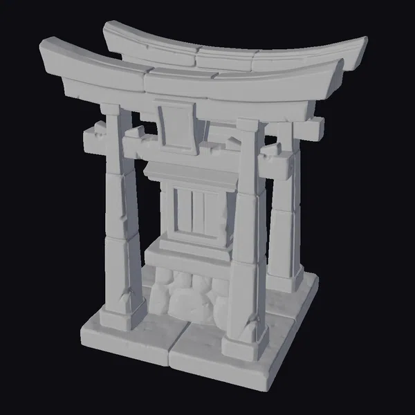 Perched atop a square base, the shrine gate’s curved roofline evokes a sense of mystique, as if sheltering secrets within. The structure’s weathered appearance, complete with moss-covered stones and a worn texture, suggests centuries of exposure to the elements. A central stone wall, adorned with moss, adds a touch of natural beauty. This 3D model is perfect for games, animation, or architectural design projects seeking an air of mystique and ancient wisdom. Bring your scenes to life with this intricately detailed shrine gate, ideal for print, VR/AR, or cinematic productions.