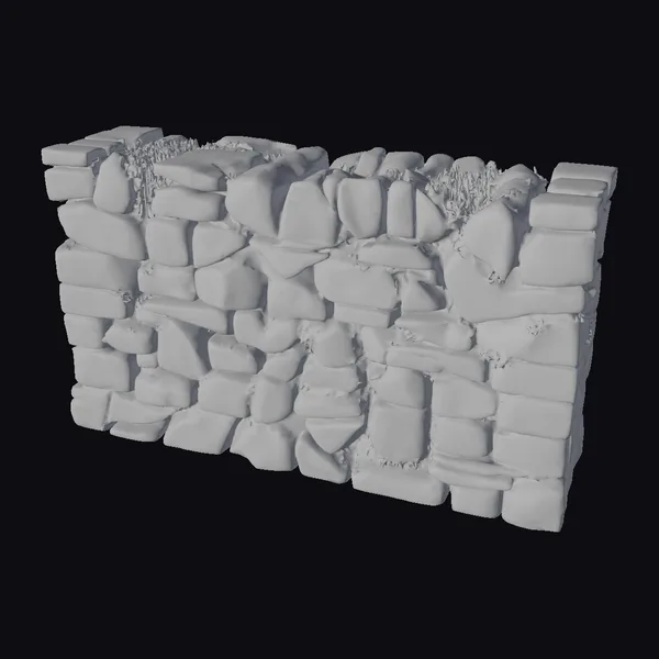 Positioned at a slight angle, this meticulously detailed stone wall section boasts a complex arrangement of stones, each uniquely textured and colored to evoke a sense of age and exposure to the elements. The stones, varying in size and shape, are stacked with a noticeable gap between some, adding to the wall’s rustic charm. A soft layer of moss blankets parts of the wall, especially along the top and lower sections, infusing the scene with a touch of vibrant green that contrasts beautifully with the muted grays and browns of the stone. The model’s realistic rendering makes it an excellent choice for projects requiring authentic, detailed environments, such as historical reconstructions, fantasy worlds, or even modern architectural designs seeking a touch of antiquity. Its potential applications span video games, architectural visualizations, animations, and virtual reality experiences.