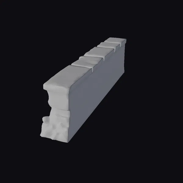 Positioned at a dynamic angle, this intricately detailed stone wall section reveals a complex interplay of textures and colors. The surface is predominantly covered in lush green moss and patches of lichen, with the stone beneath displaying a range of blues and grays, suggesting a long history of exposure to the elements. The wall’s weathered appearance, complete with cracks and crumbling sections, invites the imagination to fill in the stories of the past. Ideal for use in games, 3D printing, VR/AR experiences, animation, and architectural design projects seeking an ancient, mystical ambiance.
