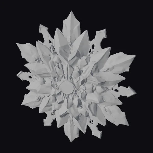 This exquisite brooch boasts a captivating design, with numerous white mother of pearl petals radiating from a central black gemstone. The petals, outlined in gold, are meticulously arranged to create a sense of movement and depth. The addition of smaller black gemstones between the petals adds a touch of contrast, enhancing the overall visual appeal. The brooch’s stylized, almost floral appearance makes it an ideal accessory for those who appreciate unique, high-end jewelry. Its intricate details and luxurious materials make it perfect for use in various applications, including 3D modeling, animation, and design projects.