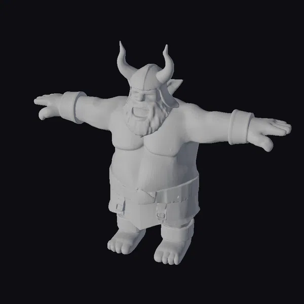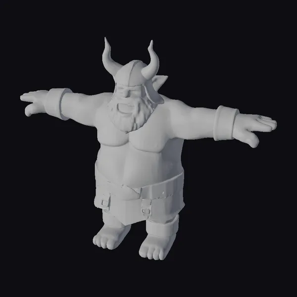 Detailed with precision, this stylized barbarian model showcases a muscular physique, emphasized by his bare chest and arms outstretched in a T-pose. The horned helmet and pointy ears hint at his fantastical nature, while the detailed beard and armored shorts provide a touch of realism. His bare feet and leather cuffs add to the character’s rugged charm. Ideal for use in games, animations, or virtual reality experiences, this model is sure to bring a touch of fantasy to any project. The high level of detail and stylization makes it suitable for a variety of applications, from character design to storytelling.