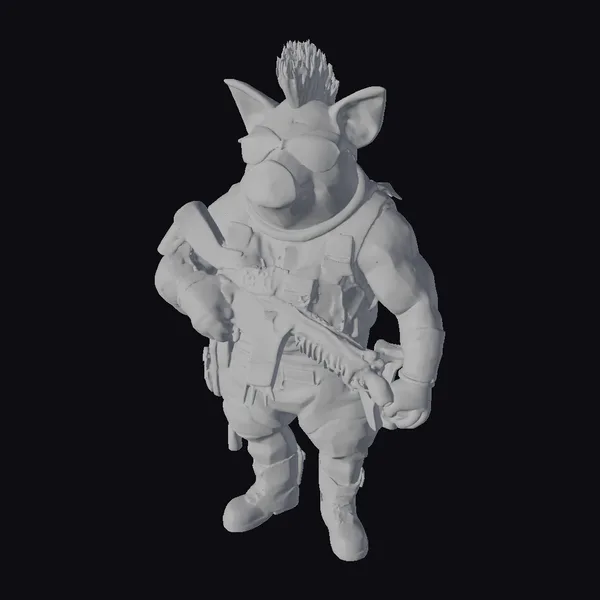 The Model “Muscular Cyberpunk Pig Warrior” is also available upon request in many other 3D formats, such as 3MF, BLEND, FBX, OBJ, USDZ and others, making it easy to integrate into your project.