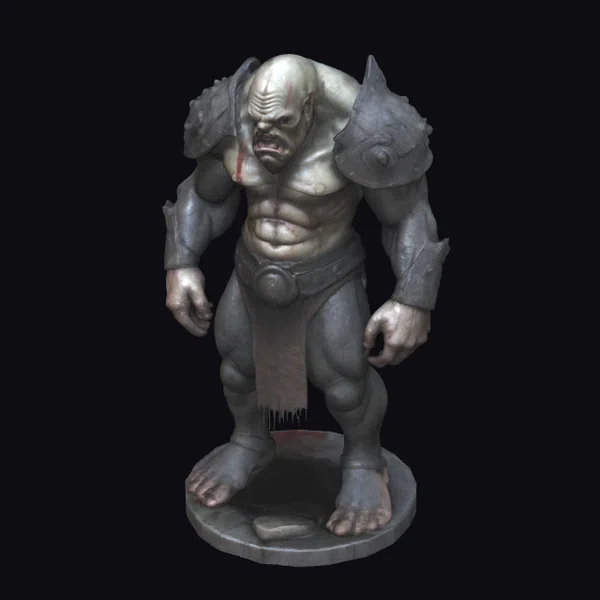 Standing imposingly, this dark fantasy cyclops warrior showcases intricate details that bring its monstrous form to life. The cyclops’ muscular physique is accentuated by its stocky body, covered in a mixture of gray and dark tones that mimic the ruggedness of rock and sea-worn armor. A singular glowing eye pierces through the darkness, casting an eerie light on the surroundings. The armor, broken and battle-worn, adds to the creature’s fearsome appearance, with textures that suggest a blend of organic and metallic materials. Bloodstains and scratches across its body hint at a history of brutal battles. This 3D model is perfect for projects that demand a dark, mythical creature, such as games, animations, or virtual reality experiences.