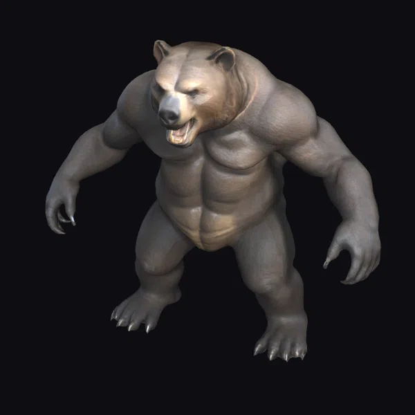 Standing tall with a powerful build, this anthropomorphic grizzly bear model showcases intricate details such as sharp claws, a strong jaw, and a fierce expression. The fur texture transitions smoothly across its body, highlighting the muscular definition under the skin. Its aggressive stance, with arms outstretched and mouth open, captures a dynamic moment of confrontation. Ideal for use in animations, games, or virtual reality experiences where a realistic yet fantastical bear character is needed. The model’s quality ensures it will integrate seamlessly into high-resolution projects.