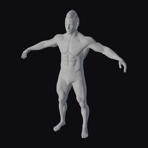 Detailed to capture the essence of the human form, this 3D model showcases a muscular man posed dynamically, with an emphasis on his well-defined muscles and athletic build. His short hair and focused expression add to his charismatic presence. The model is dressed in form-fitting black underwear, accentuating his physique. The realistic textures and lighting enhance the overall lifelike appearance, making this model suitable for a variety of applications, including games, animation, virtual reality (VR), augmented reality (AR), and design projects.