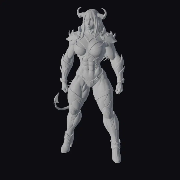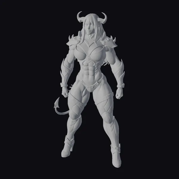 Standing tall with a confident stance, the Muscular She-Devil exudes power and allure. Her red skin glistens with a subtle sheen, while her black armor, adorned with spikes and a distinctive design, adds to her fearsome appearance. The long, flowing red hair and sharp horns on her head, along with her pointed tail, emphasize her demonic nature. This detailed model captures the essence of a dark fantasy character, perfect for projects requiring a blend of horror and erotic themes. Ideal for use in games, animations, or 3D printing, this model offers a versatile asset for creators.