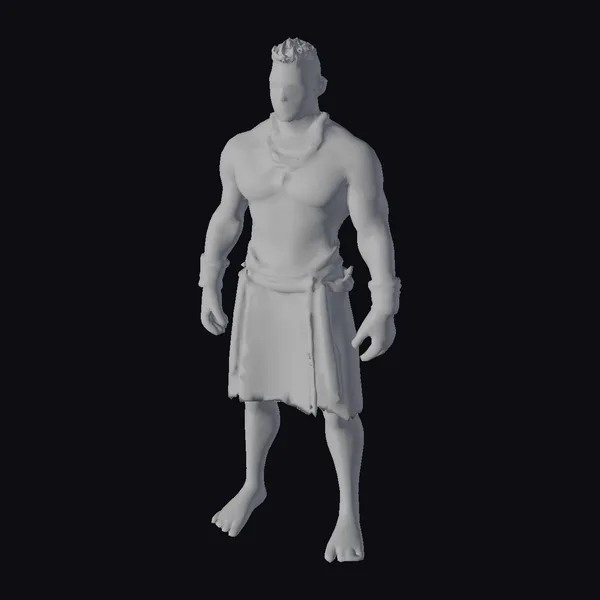 This powerful tribal warrior 3D model showcases a muscular male figure clad in traditional tribal garb, complete with a wrapped cloth around his waist and layered beads around his neck and wrists. His intense downward gaze and defined physique convey a sense of rugged readiness. The model’s detailed textures and stylized features make it suitable for various applications, including games, animation, 3D printing, and virtual reality experiences. The model’s unique blend of ancient style and physical prowess makes it an excellent choice for projects seeking an authentic, mystical atmosphere.