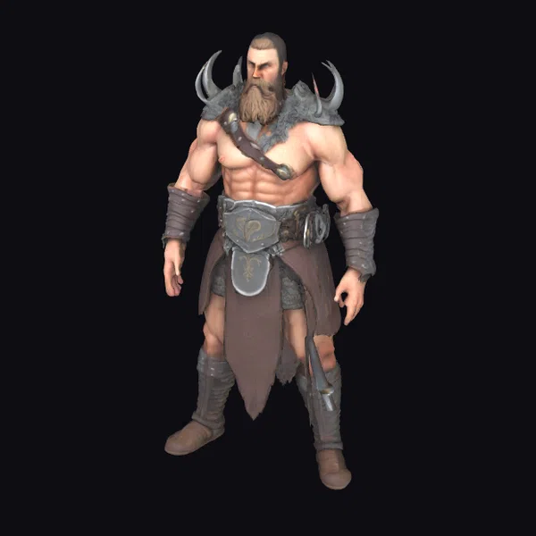 Detailed with precision, this Viking warrior model showcases an imposing figure with a well-defined physique, standing in a classic A-pose that highlights his muscular build. The intricate design of his armor, including the shoulder guards and greaves, is complemented by a braided beard and a stern expression, capturing the essence of a fearless Norse warrior. The model’s realistic style makes it suitable for various applications, including game development, animation projects, and architectural visualizations where a touch of historical fantasy is desired. Its high level of detail, from the texture of the skin to the metal of the armor, ensures a versatile and engaging addition to any creative project.