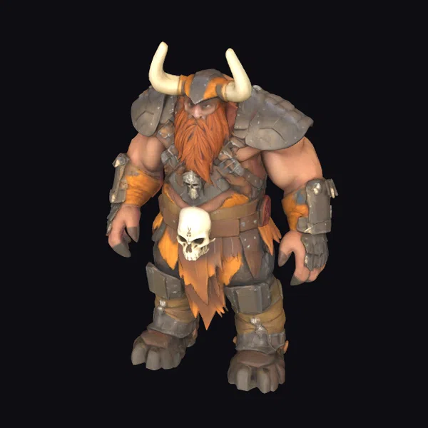 Standing tall with a powerful stance, this warrior’s detailed armor and fur texture evoke a sense of ancient, tribal strength. His long, flowing orange beard and hairy arms add to the mythical aura, while the two prominent horns on his helmet suggest a connection to legendary creatures. The skull on his belt buckle adds an air of mystery and danger. This model is perfect for use in games, animations, or 3D printing projects that require a character with a strong, aggressive presence. The level of detail in the armor, from the metallic sheen to the fur textures, ensures a high-quality visual impact.
