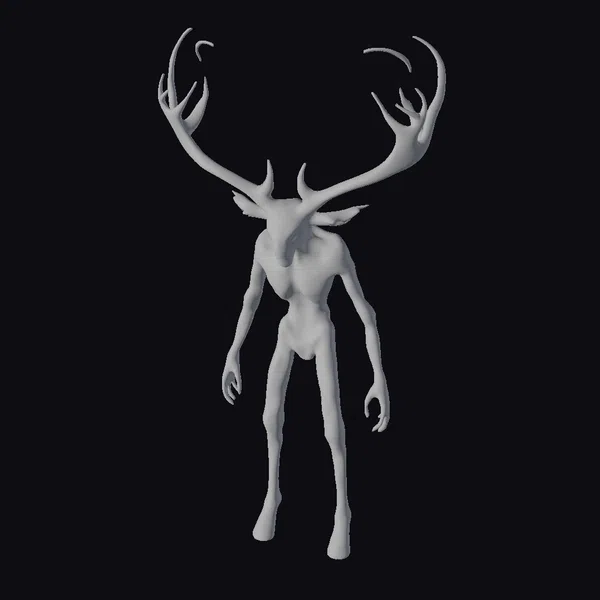 Standing tall with an unnerving posture, this mutated deer-human mix showcases a blend of organic and terrifying features. The creature’s skeletal frame is covered in a thin, almost translucent skin that seems to be pulled taut over its elongated limbs. Its antlers stretch wide, casting a foreboding shadow. The eyes seem sunken, adding to the overall horror aesthetic. This model is perfect for those looking to add a touch of dark fantasy or horror to their projects, whether it’s for game development, animation, or 3D printing. Its unique design ensures it will stand out in any scene.