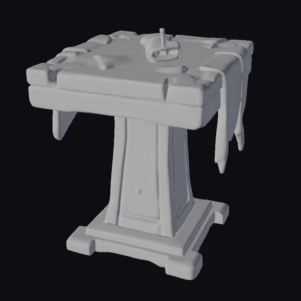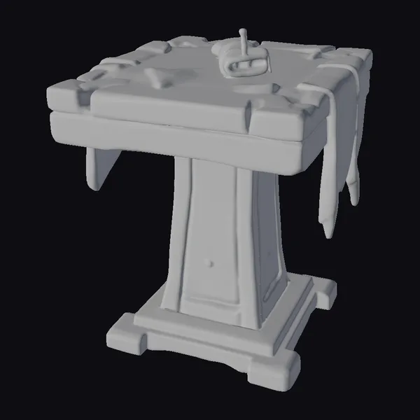 Crafted with meticulous attention to detail, the Mystic Scroll Table stands as a testament to fantasy craftsmanship. Its wooden surface, rich with texture and depth, is framed by ornate carvings that dance along its edges. A soft, golden glow emanates from a candle placed atop a scroll, casting a warm light on the table’s surface. The table’s sturdy base, adorned with a subtle knot, grounds the piece, suggesting a blend of functionality and mystical allure. Ideal for use in games, 3D printing, VR/AR experiences, animation, and design projects seeking a touch of ancient mystique.