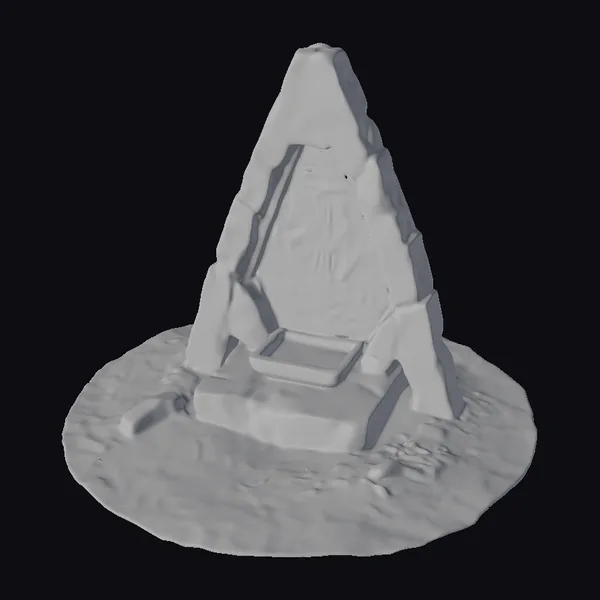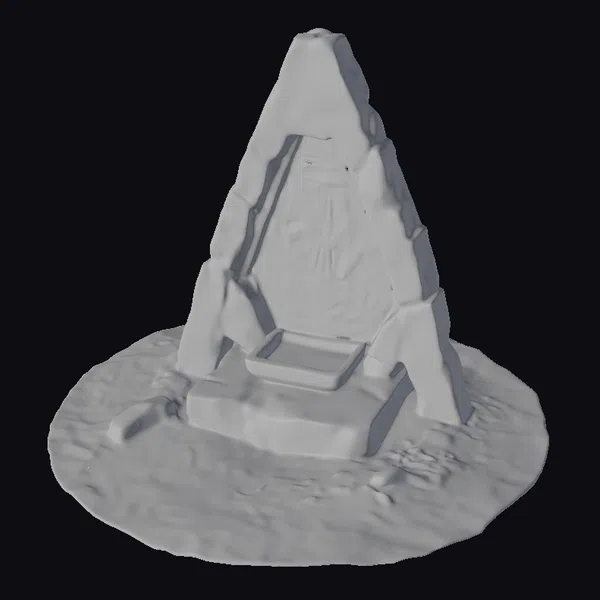 Crafted with meticulous attention to detail, this 3D model of a mystical dark stone altar presents a mesmerizing sight. The structure’s angular, monolithic design features a stone pyramid with a glowing golden altar at its base, adorned with intricate carvings that seem to pulse with a soft, ethereal light. The altar’s surface is weathered, with natural cracks and textures that add to its ancient, mystical ambiance. Positioned on a circular stone base, this model is perfect for use in games, 3D printing, VR/AR experiences, animation projects, or architectural designs seeking a touch of fantasy and mystery. Its unique blend of dark stone and golden glow can transport viewers to a realm of wonder and enchantment.