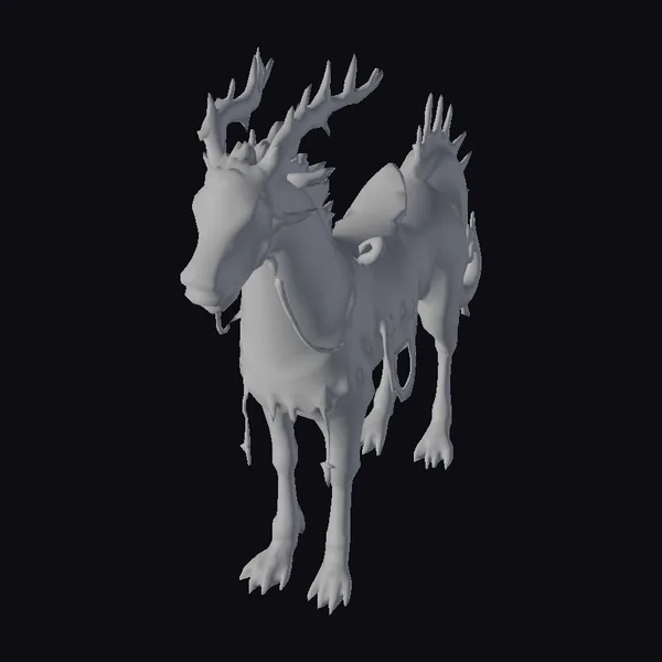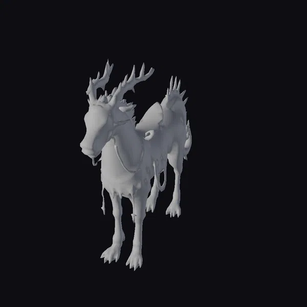This stunning, stylized chimera stands proudly, showcasing a vibrant emerald-green coat with subtle gradient effects. Golden accents and iridescent details dance across its body, from the antler-like protrusions on its head to the ornate harness adorning its neck and legs. The creature’s composite features – wolf-like body, tiger-like stripes, lion-like mane, and fennec-like ears – blend seamlessly, evoking a sense of wonder. Its eyes gleam with an otherworldly light, inviting you to explore fantastical realms. Ideal for use in games, 3D printing, VR/AR experiences, animation, and design projects, this model is sure to captivate audiences.
