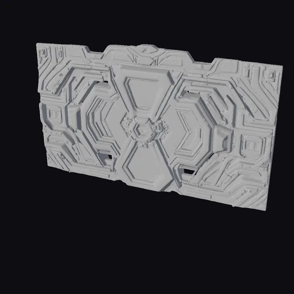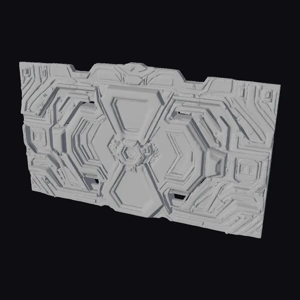 Imagine standing in front of a sleek, high-tech portal, its surface a mesmerizing dance of neon lights. This intricately designed wall features a dark grey base with raised, circuit-like patterns that pulse with bright red and teal neon lights. The central hexagonal motif draws the eye, surrounded by smaller geometric shapes that add depth and visual interest. The portal’s surface appears worn, with subtle scratches and scuffs that enhance its realistic, industrial feel. Ideal for use in games, animations, or architectural visualizations, this model brings a touch of futuristic flair to any scene.