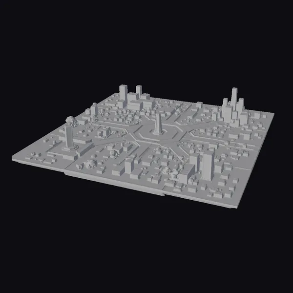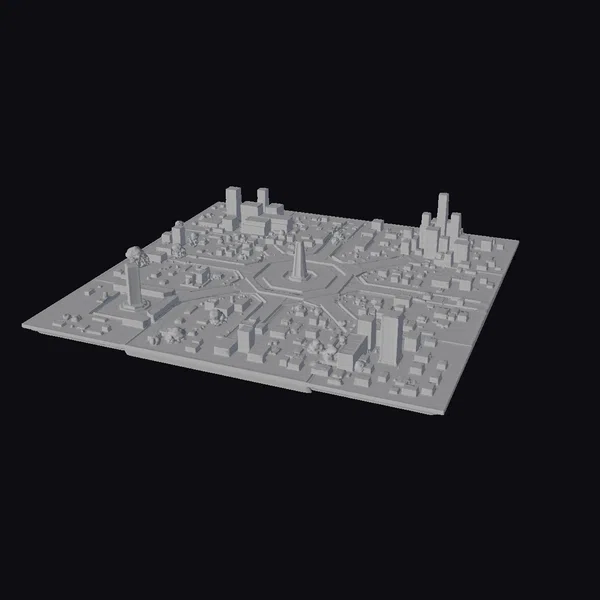 Floating dynamically against a crisp white background, this 3D model presents a meticulously detailed city grid, teeming with futuristic architecture. The city’s layout is divided into sections by a network of radiant blue lines, converging at a central white spire. The left and central areas are bathed in a cool blue glow, while the right side bursts with warm, golden light. The model’s intricate details include varied building heights, from towering skyscrapers to shorter structures, and a blend of geometric and organic shapes. The city grid’s design seems to pulse with energy, making it perfect for projects requiring a futuristic urban feel. Whether you’re working on a game, animation, or architectural visualization, this model brings a vibrant, high-tech cityscape to life.