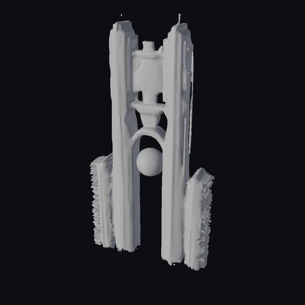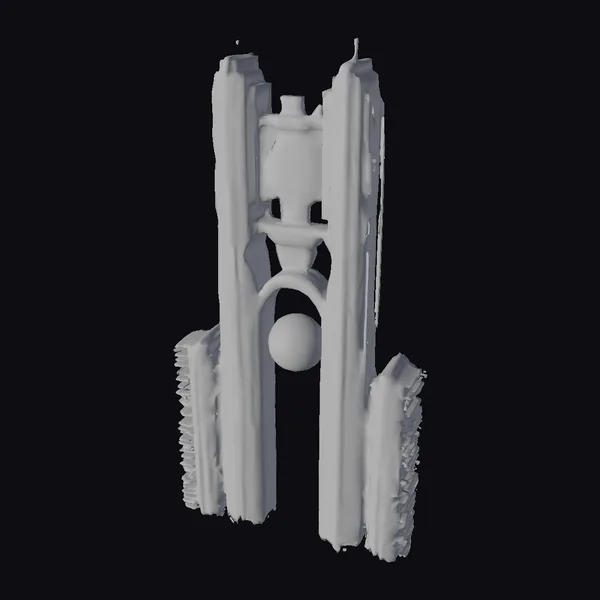 Detailed with precision, the cyberpunk archway features a complex arrangement of dark alloy panels and exposed structural ribs, giving it a robust and futuristic appearance. Two glowing spheres, one purple and one blue, are embedded within the archway’s structure, emitting a neon glow that reflects off the metallic surfaces. The archway’s pose suggests it could be a gateway or a monumental structure in a futuristic cityscape. Its intricate details and vibrant colors make it an ideal model for use in games, 3D printing, VR/AR experiences, animation, and architectural design projects.