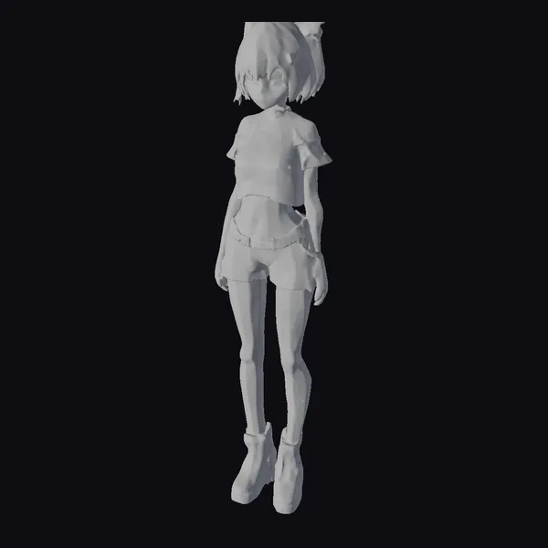 Detailed with precision, this stylized 3D model of a girl features a cyan hairstyle styled in a ponytail, framing her face with a fringe that adds to her youthful appeal. Her outfit is a kaleidoscope of colors: a white and purple crop top with off-shoulder sleeves, pink shorts with vibrant neon yellow and blue gradients, and matching purple boots. The model is posed with one leg slightly forward, hands by her sides, exuding a casual confidence. The neon magenta base color with cyan gradients and white highlights creates a glowing effect, ideal for games, animations, or virtual reality projects that require a character with a dynamic and playful vibe. The model’s design focuses on a slim, youthful appearance with a modern, edgy twist, making it versatile for various creative applications.