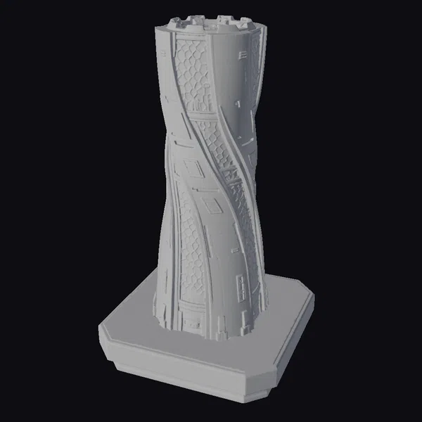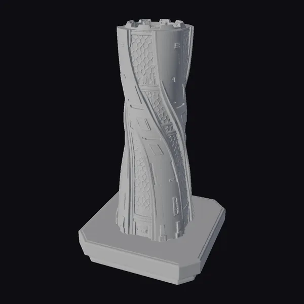 Perched on a solid gray base, the Neon Helix Spire rises as a marvel of futuristic architecture, its twisted, cylindrical form evoking a sense of dynamic energy. The surface is a masterful blend of gray tones, accented with glowing blue lines that pulse with an ethereal light. A honeycomb pattern adds texture to the structure, while small panels and vents suggest a complex, high-tech interior. As the helix spirals upward, it creates a sense of movement, as if the very fabric of the tower is in motion. This 3D model is perfect for projects requiring a cutting-edge, sci-fi aesthetic, whether for games, animation, VR/AR experiences, or architectural design. Its unique blend of form and function makes it an eye-catching addition to any futuristic scene.