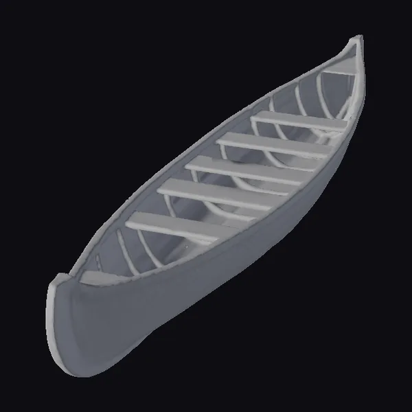 Perched at a gentle angle, the canoe’s worn wooden hull takes center stage. The dark wood tone, rich with age and character, is beautifully textured to mimic the natural wear of years spent on the water. The slats that form the canoe’s interior are meticulously detailed, showcasing the craftsmanship that went into its creation. Whether you’re looking to add a touch of rustic charm to a 3D environment, create a compelling narrative in animation, or simply appreciate the beauty of a bygone era, this canoe model is sure to impress. Its realistic appearance makes it an excellent choice for projects requiring a high level of authenticity, from historical dramas to outdoor adventures.