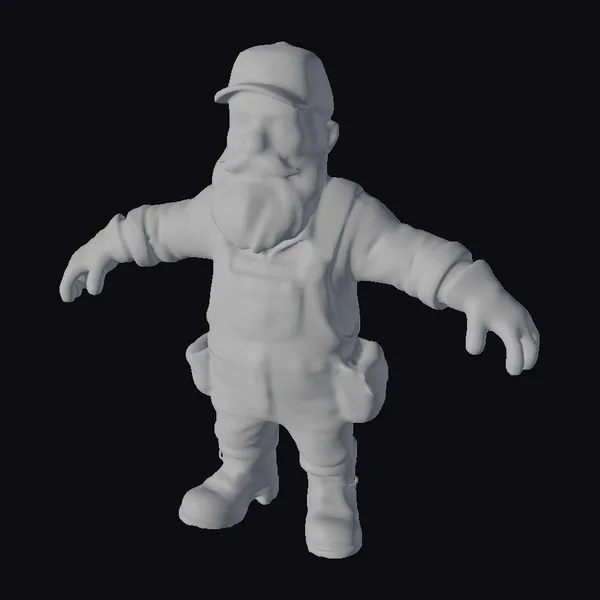 Standing with arms outstretched, this charming old man is the epitome of a seasoned gardener. His blue overalls, adorned with a bright yellow star, are complemented by yellow gloves and a matching cap, creating a vibrant contrast against his gray beard and hair. The brown boots and tool belt add a touch of practicality to his appearance. This model is perfect for projects requiring a friendly, approachable character, such as animations, games, or architectural visualizations. Its cartoonish style ensures it will bring a lighthearted feel to any scene.