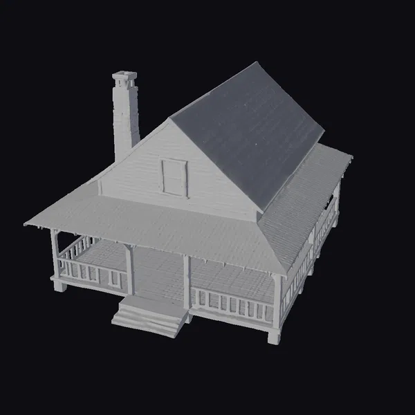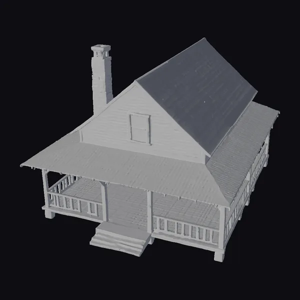 Perched on a slight incline, this captivating 3D model of an old west wooden home exudes a sense of warmth and coziness. The gabled roof, adorned with a brown shingle finish, slopes gently downwards, while the wooden siding boasts a rich, reddish-brown hue. A wraparound porch, complete with a railing and support columns, creates a seamless transition between indoors and outdoors. A small window on the upper facade allows natural light to pour in, illuminating the interior. The brick chimney, topped with a decorative cap, adds a touch of industrial charm. This highly detailed model is perfect for architects, designers, and game developers seeking to create immersive environments. Its versatility makes it suitable for various applications, including architectural visualizations, animations, and 3D printing.