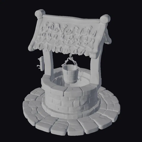 Imagine a quaint, rustic well with a wooden roof and a bucket suspended from a chain, set amidst a circular brick platform. The Old Wishing Well model boasts a charming, whimsical design with intricate details, perfect for adding a touch of fantasy to your projects.