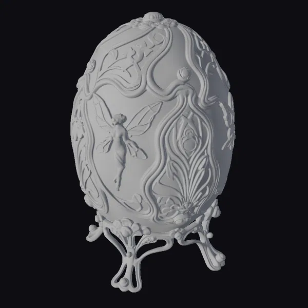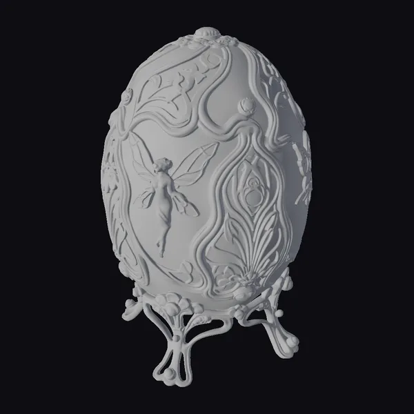The opalescent faerie egg sits majestically on a golden stand, its surface a mesmerizing blend of colors that shift and shimmer in the light. The fairy’s wings, a kaleidoscope of blues and greens, seem to flutter within the egg’s depths. Golden accents and intricate patterns add an air of opulence, while the peacock-inspired motifs evoke a sense of mystique. This 3D model is perfect for use in games, animation, or design projects where a touch of magic and whimsy is desired. Its unique blend of fantasy and luxury makes it an eye-catching addition to any scene or environment.