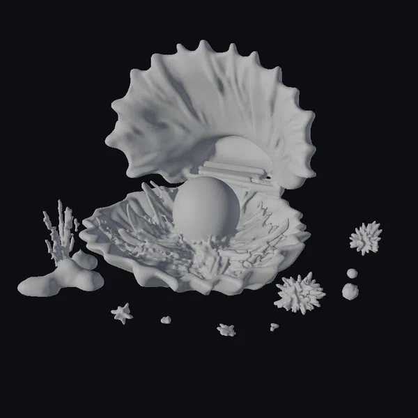 In a serene, underwater tableau, the opened sea clam takes center stage, its shell delicately positioned to showcase the radiant pearl within. The clam’s interior is adorned with lush, green seaweed, adding a pop of color and texture to the scene. The pearl itself glows with a soft, ethereal light, as if infused with an otherworldly essence. Surrounding the clam, tiny sea creatures and bubbles add a sense of movement and life to the composition. This stunning 3D model is perfect for use in games, animation, or 3D printing, offering a captivating visual experience that transports viewers to an underwater world of wonder.