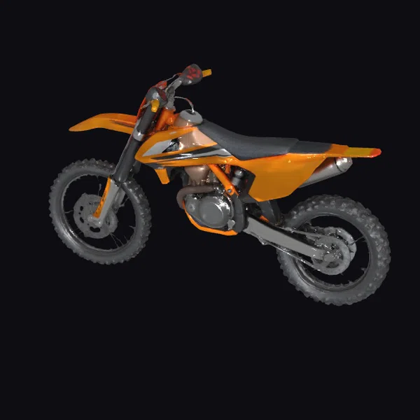 Positioned in a powerful stance, the motorcycle boasts an eye-catching orange body with black and silver details. The rugged tires and high-mounted exhaust pipe emphasize its off-road capabilities. The bike’s design is characterized by sharp lines and a compact frame, suggesting a high-performance vehicle. The detailed engine and suspension system add to its realistic appearance. Ideal for use in games, animations, or architectural visualizations, this model can bring an authentic touch to various projects. Its high level of detail makes it suitable for close-up shots or dynamic scenes.