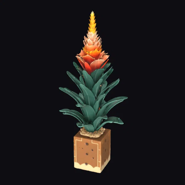 This intricately designed plant features a sturdy, earthy base adorned with texture, from which emerges a lush cluster of green leaves. Atop this foliage, a stunning, stylized flower blooms, transitioning from deep oranges to bright yellows. The entire model exudes a sense of stylized realism, making it perfect for adding a touch of nature’s beauty to games, animations, or architectural designs. Its unique blend of realism and abstraction allows it to stand out in various applications, from 3D printing to virtual reality environments.
