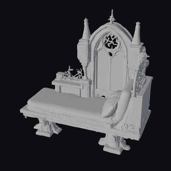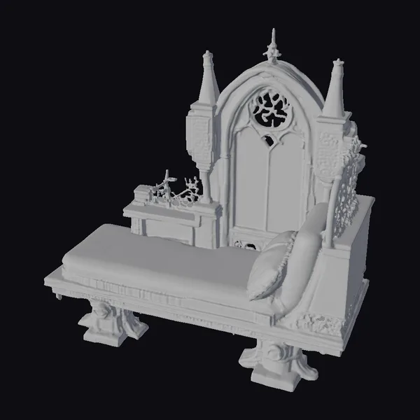 The Model “Ornate Gothic Bed” is also available upon request in many other 3D formats, such as 3MF, BLEND, FBX, OBJ, USDZ and others, making it easy to integrate into your project.