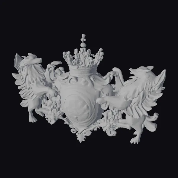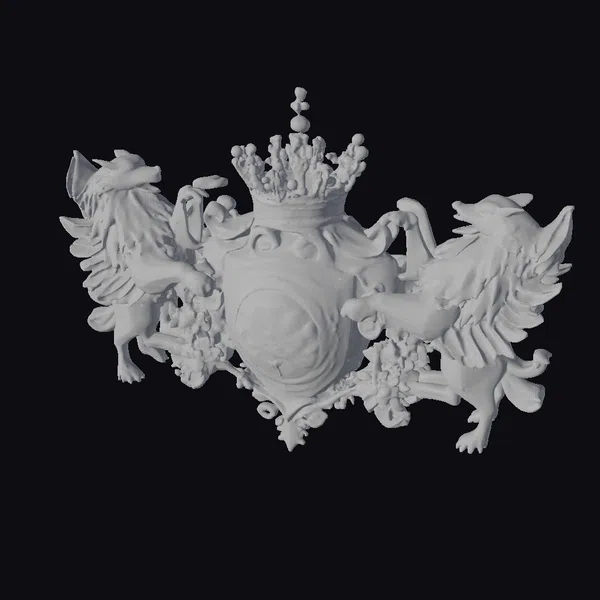 Intricately designed with precision and grandeur, the Ornate Heraldic Moonflower Emblem showcases two majestic wolves standing proudly on either side of a shield. The shield itself boasts a stunning moonflower and full moon design, encircled by golden accents and ornate details. Atop the shield, a regal crown adds a touch of majesty. This emblem is perfect for use in games, 3D printing, VR/AR experiences, animation, and design projects, where a symbol of luxury and power is required. The level of detail, from the texture of the wolves’ fur to the delicate petals of the moonflower, makes this model a standout asset.