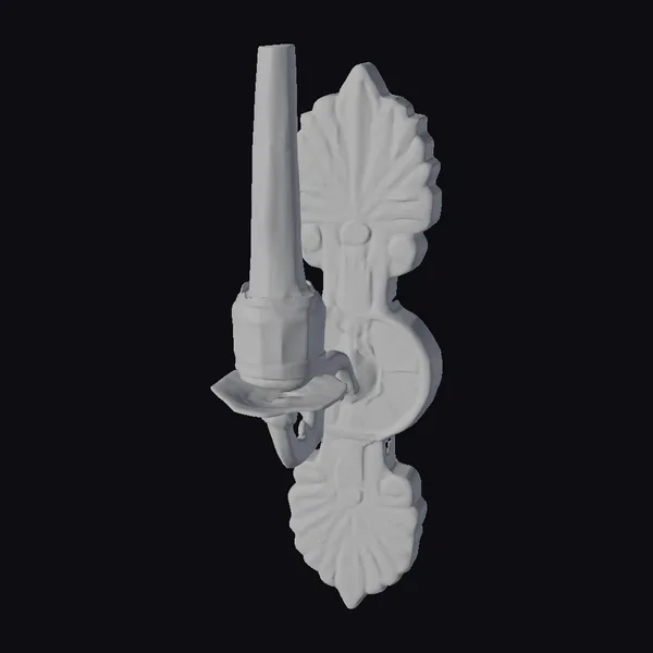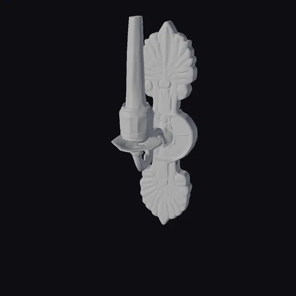 Crafted with meticulous attention to detail, this ornate metal wall sconce boasts a richly textured surface and a sophisticated design that evokes a sense of nostalgia. The sconce’s metal construction is finished in a warm, earthy tone that adds a touch of vintage charm to any room. Its unique shape, complete with a fluted candle holder and decorative backplate, makes it a stunning focal point for interior design projects. Ideal for adding a touch of classic elegance to games, animations, 3D prints, or architectural visualizations.