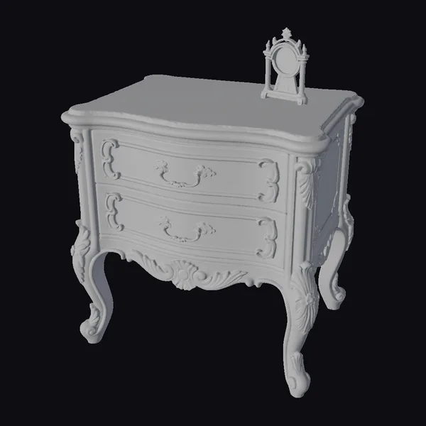 The Model “Ornate Nightstand with Clock” is also available upon request in many other 3D formats, such as 3MF, BLEND, FBX, OBJ, USDZ and others, making it easy to integrate into your project.