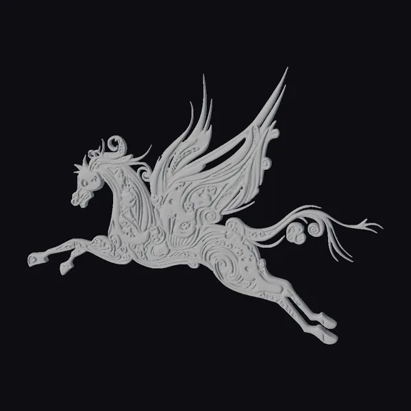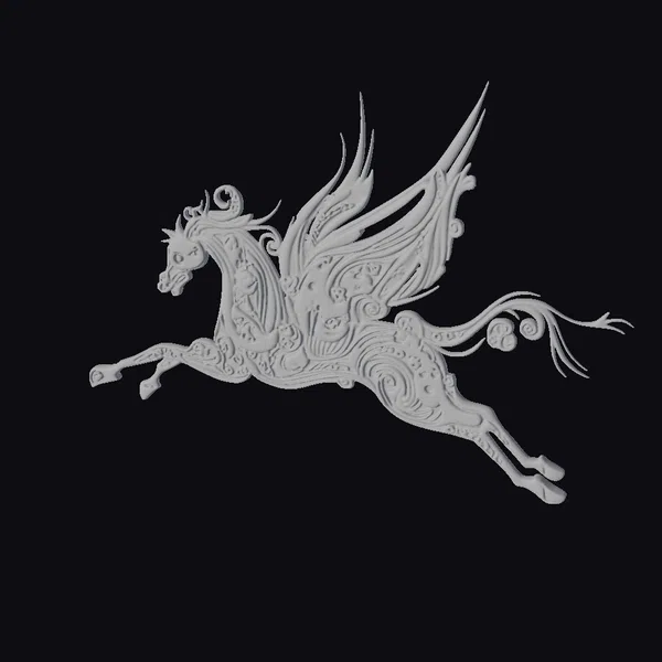 In a dynamic, curved stance, this ornate pegasus model showcases a beautiful blend of fantasy and artistry. The curved lines and swirling patterns that cover its body create a dreamy atmosphere, as if the creature is about to take flight. The metallic texture gives the model a sense of shine and depth, while the black and white color scheme adds a touch of timelessness. The model’s pose, with wings outstretched and legs in mid-gallop, conveys a sense of movement and energy. Ideal for use in games, animation, or 3D printing, this model is sure to add a touch of magic to any project. Its intricate details and curved lines make it a standout piece, perfect for designers and artists looking to add a mythical touch to their work.