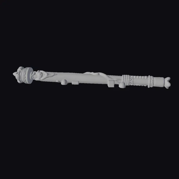 Positioned dynamically, the scepter showcases its elaborate design, with a bold red body that serves as a canvas for the intricate black and white checkered patterns. The scepter’s surface is embellished with pink and white bands, adding a touch of elegance and sophistication. The gold crown at the scepter’s head shines brightly, symbolizing victory and triumph. Crafted with meticulous attention to detail, this model boasts a high level of realism, making it perfect for use in games, 3D printing, VR/AR experiences, animation, and design projects. Its unique blend of fantasy and royal elements makes it a standout piece.