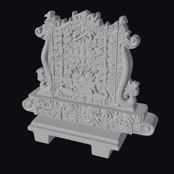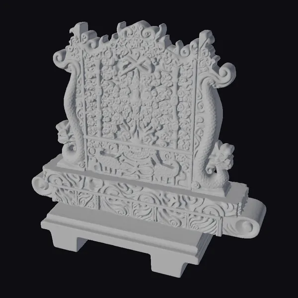 Positioned against a plain backdrop, the throne’s imposing presence is accentuated by its ornate carvings and curved lines. The backrest features a stunning floral pattern, while the armrests are shaped like mythical creatures. The seat and footrest are crafted from a single piece of wood, showcasing the artisan’s skill. This 3D model is perfect for game developers, architects, and designers seeking to add a touch of grandeur to their projects. Whether used in a virtual environment, animation, or 3D printing, this throne is sure to impress. Its intricate details and realistic textures make it an excellent choice for those aiming to create an immersive experience.