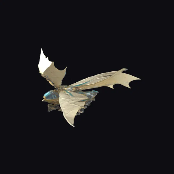 In a dynamic pose, the ornithopter’s metallic body gleams with a warm, golden light, while its expansive wings, a mesmerizing blend of beige and blue hues, appear to be in mid-flutter. The intricate details of the machine’s structure are accentuated by the play of light on its surface, suggesting a blend of Victorian elegance and industrial innovation. The ornate blue components add a touch of sophistication, hinting at the advanced technology or magic that powers this flying marvel. Whether you’re creating a steampunk-inspired game, crafting a sci-fi narrative, or designing a futuristic world, this ornithopter model brings a sense of adventure and exploration to your project. Its detailed textures and realistic proportions make it an excellent choice for animation, 3D printing, or virtual reality experiences.