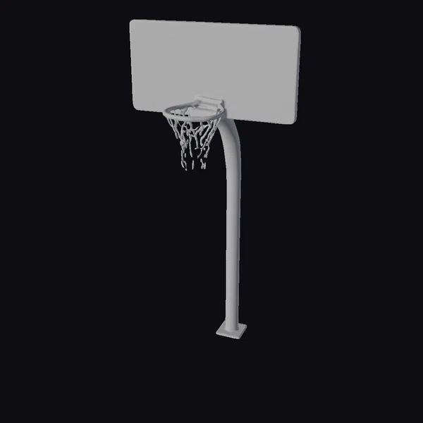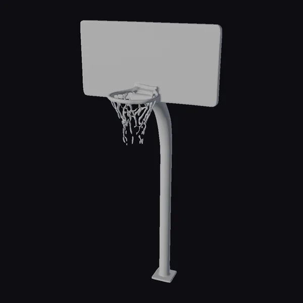 In a sturdy stance, the basketball hoop rises from its square base, its curved support pole bending elegantly forward to support the backboard and hoop. The backboard is a clean white, with an orange border framing the clear backboard surface. The hoop itself is a vibrant orange, complete with a metal rim and a net that hangs in loose, inviting folds. The metal construction is robust, suggesting a build that can withstand the rigors of outdoor play. Textures are smooth and detailed, capturing the sheen of metal and the slight give of the net. Lighting highlights the curves of the pole and the flat surfaces of the backboard and rim. This model is perfect for use in sports simulations, outdoor recreation scenes, or as a detailed prop in architectural visualizations. Its realistic appearance makes it suitable for projects requiring a high level of detail and realism.