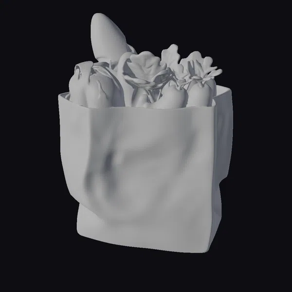 Detailed with precision, the paper grocery bag is filled to the brim with an assortment of colorful vegetables and fruits, including crisp lettuce, juicy tomatoes, and crunchy carrots. The stylized model showcases a soft, peach-colored bag with a natural, crumpled texture. The contents of the bag are meticulously arranged, with each item carefully placed to create a visually appealing composition. Ideal for use in animations, games, or 3D renderings, this model brings a pop of color and freshness to any scene. Its versatility makes it perfect for designers, artists, and developers seeking to add a touch of everyday life to their projects.