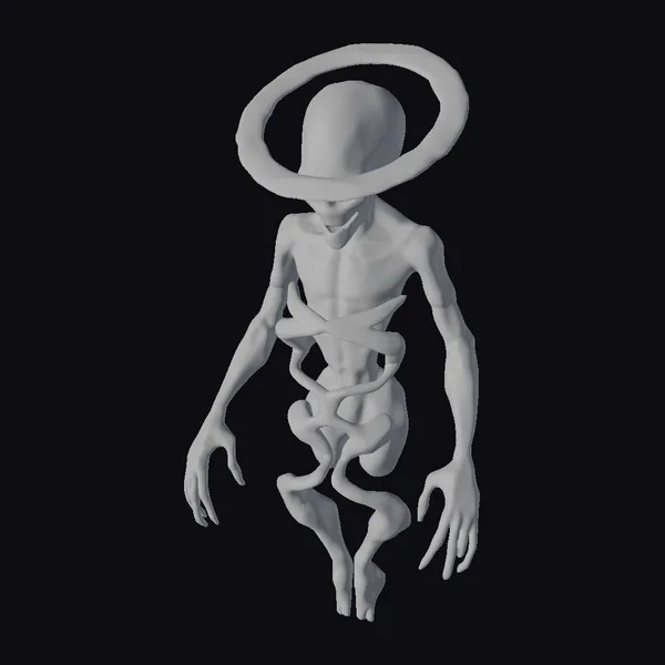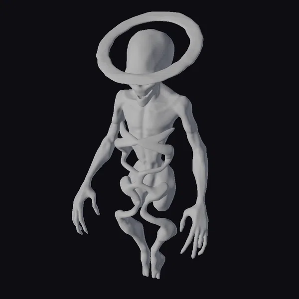 Floating dynamically in a state of eerie calm, the paradoxical golem presents a visually stunning amalgamation of impossible geometry. Its humanoid form is crafted from interwoven Möbius strips that twist and loop in seemingly impossible ways, while Escher-like staircases ascend its body in a dizzying display of paradoxical design. Fractal loops weave through its limbs, adding to the enigma. The head, encircled by a halo featuring a pentagram, adds a mystical, perhaps ominous, aura. The entire figure is bathed in a monochromatic scheme that shifts between gray and stone-like hues, suggesting a form both ancient and timeless. This model is perfect for projects requiring a touch of the surreal and fantastical, such as animations, games, or VR/AR experiences that seek to explore themes of paradox and the abstract.