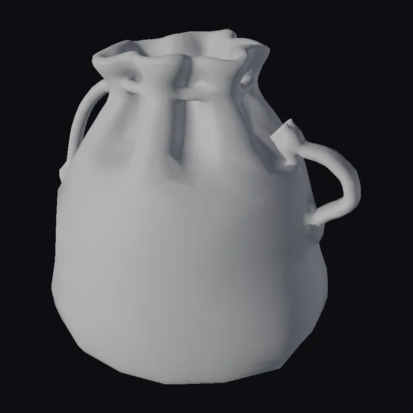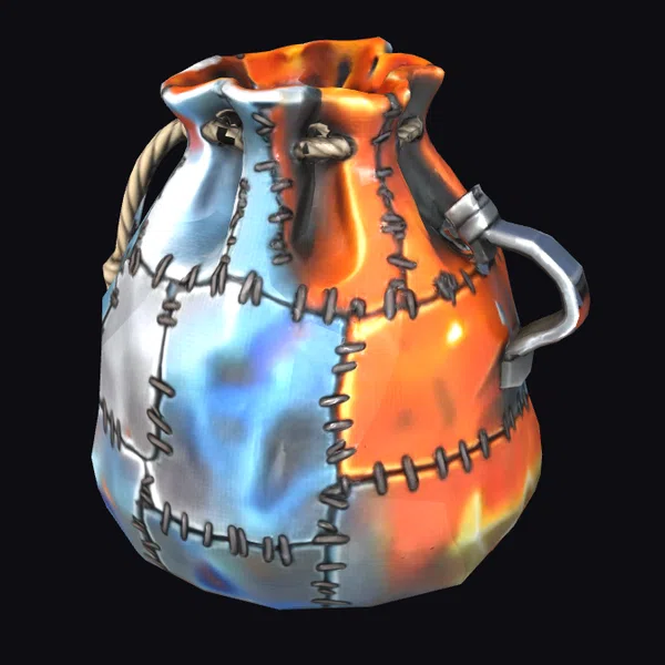 This eye-catching, stylized prison stash bag boasts a mesmerizing patchwork design, with various fabric scraps sewn together to create a vibrant, multi-colored surface. The bag’s body is a mix of smooth, shiny materials, with visible stitching and metal hardware adding a touch of industrial ruggedness. A sturdy rope handle protrudes from the top, while a metal handle on the side provides an additional grip. The bag’s proportions are slightly irregular, giving it a handmade, organic feel. When lit, the bag’s surface shimmers with a subtle, iridescent glow, as if the colors are shifting and changing. This 3D model would be perfect for adding a pop of personality to games, animations, or virtual environments. Its unique design and bold color scheme make it an excellent choice for designers seeking to add a touch of whimsy or edginess to their projects.