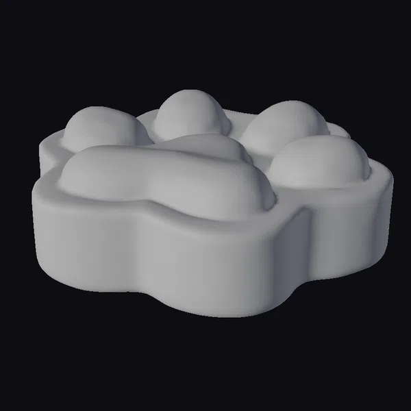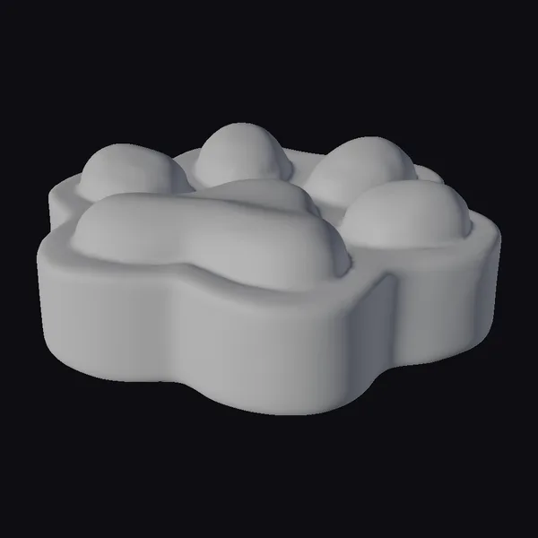 Floating dynamically on a plain background, the model showcases a pink silicone base with a glossy finish, adorned with bubble-like paw pads in various pastel shades. The base of the model has a squishy appearance, inviting the viewer to imagine its softness. The paw pads, ranging in color from blue-green to yellow, are smoothly integrated into the base, creating a visually appealing contrast of shapes and hues. Crafted as a single, solid mesh, this model is perfect for applications in 3D printing, virtual reality, or as a decorative element in digital environments. Its unique design makes it an excellent choice for designers looking for something out of the ordinary.