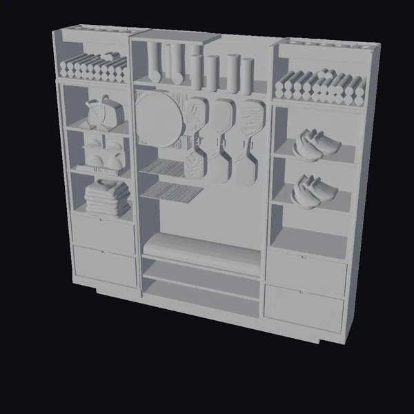The Model “Pickleball Gear Closet Organizer” is also available upon request in many other 3D formats, such as 3MF, BLEND, FBX, OBJ, USDZ and others, making it easy to integrate into your project.