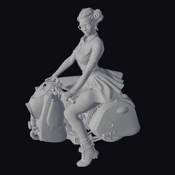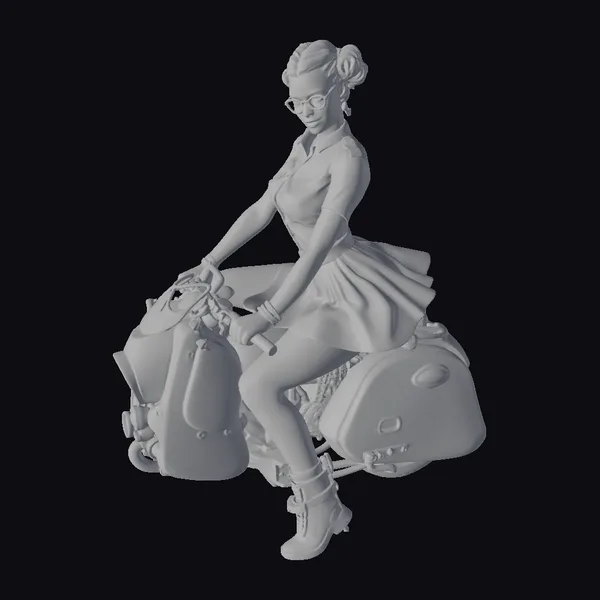 The Model “Pin-Up Nurse on Motorcycle” is also available upon request in many other 3D formats, such as 3MF, BLEND, FBX, OBJ, USDZ and others, making it easy to integrate into your project.