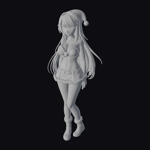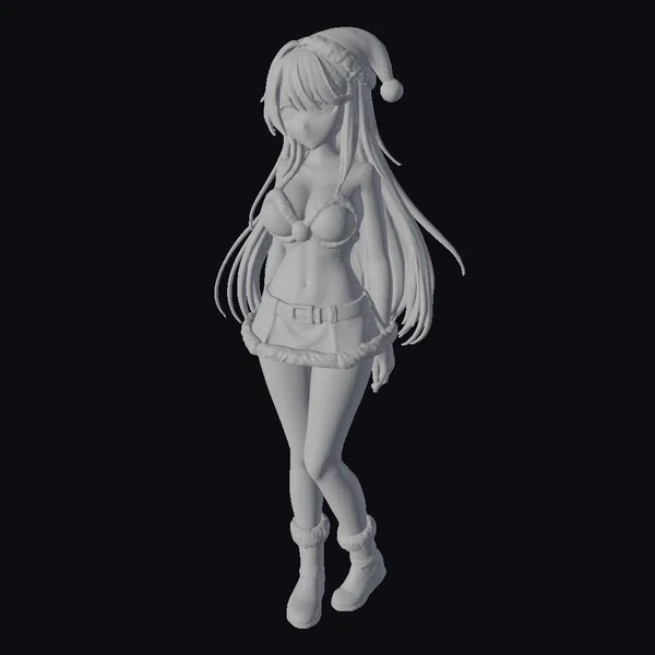 Standing with a gentle posture, this anime character is meticulously detailed with long, flowing pink hair and striking blue eyes. She wears a Santa hat atop her head, complementing her red and white bra, short skirt with fur trim, and knee-high boots. The model’s festive attire is complete with a black belt and a gold buckle, adding a touch of elegance to her playful demeanor. Her expression is calm and inviting, making her a perfect addition to any holiday-themed project. Ideal for use in animations, games, or as a decorative element in digital designs, this model brings a cheerful and lively atmosphere to any scene.